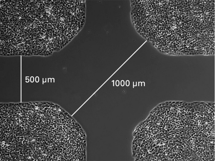 - 相鄰細胞塊之間 500 µm +/- 50 µm